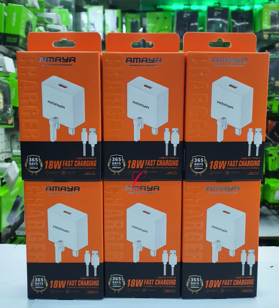 Amaya AD017U 18W Fast Charger with USB-to-Type-C Cable